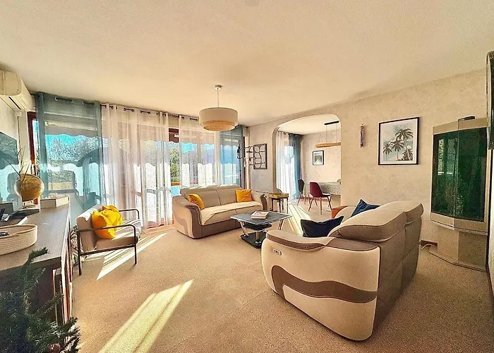 Disfruta de tus vacaciones en Saint-Raphaël en el Grand appartement baigné de soleil avec parking Saint-Raphaël. Ideal para quienes buscan una experiencia auténtica, está situado a poco más de 10 minutos en coche de los Arènes de Fréjus y a unos 3 km de la Catedral de Nuestra Señora y San Esteban. Los huéspedes pueden disfrutar del Wi-Fi.
